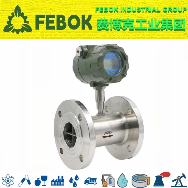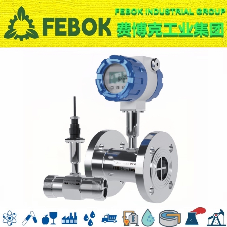 / product introductionFEBOK INDUSTRIAL GROUP 美国费博克工业集团AL-LWGY系列涡轮流量计是吸取了国内外流量仪表技术经过优化设计,具有结构简单、轻巧、精度高、复现性好、反应灵敏,安装维护使用方便等特点的新一代涡轮流量计,广泛用于测量封闭管道中与不锈钢1Cr18Ni9Ti、2Cr13及刚玉Al2O3、硬质合金不起腐蚀作用,且无纤维、颗粒等杂质,工作温度下运动粘度小于5×10-6m²/s的液体,对于运动粘度大于5×10-6m²/s的液体,可对流量计进行实液标定后使用。若与具有特殊功能的显示仪表配套,还可以进行定量控制、超量报警等,是流量计量和节能的理想仪表。AL-LWGY型涡轮流量计结构为防爆设计,可以显示流量总量,瞬时流量和流量满度百分比。电池采用长效锂电池,单功能积算表电池使用寿命可达5年以上,多功能显示表电池使用寿命也可达到12个月以上。一体化表头可以显示的流量单位众多,有立方米,加仑,升,标准立方米,标准升等,可以设定固定压力、温度参数对气体进行补偿,对压力和温度参数变化不大的场合,可使用该仪表进行固定补偿积算。