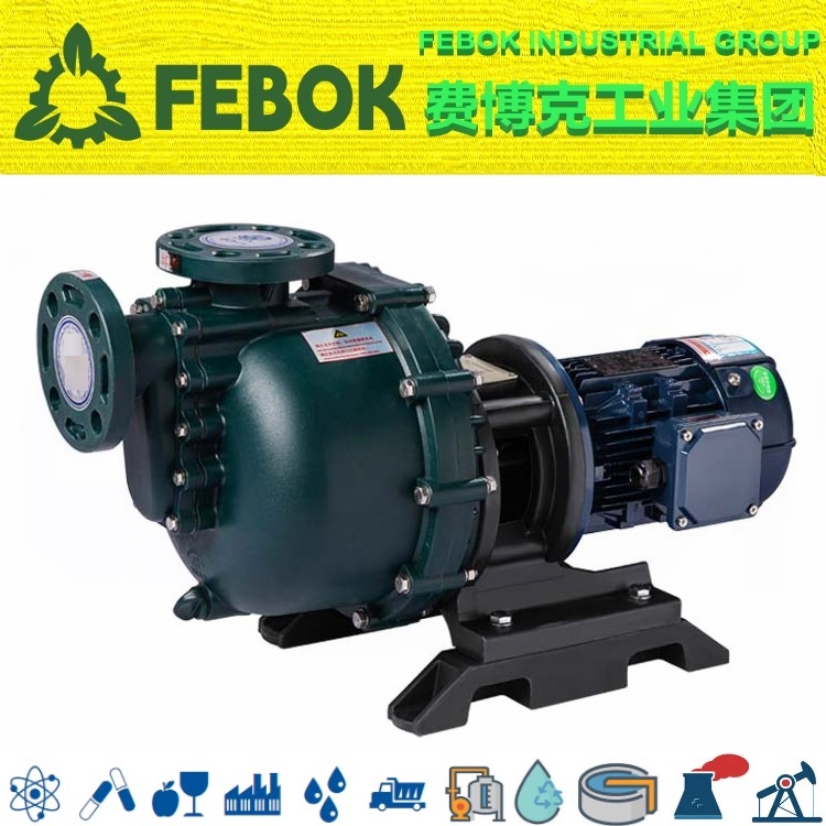 FEBOK INDUSTRIAL GROUP 费博克工业集团耐腐蚀化工塑料污水提升泵采用无轴封设计,确保自吸泵零泄漏输送,磁力驱动泵设计独特、抗酸耐碱、运转宁静。