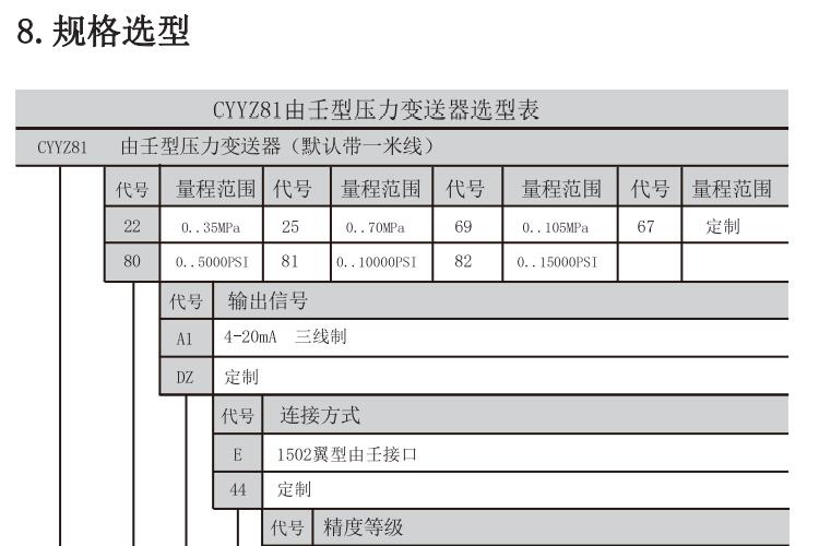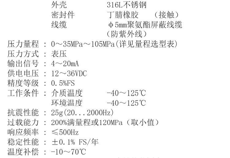 | 压力量程 | 0~35MPa~105MPa(详见量程选型表) |