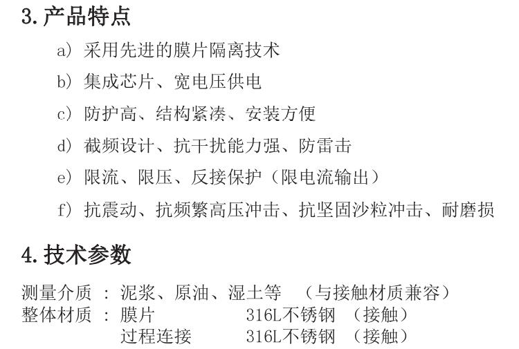 | 测量介质 | 泥浆、原油、湿土等(与接触材质兼容) |