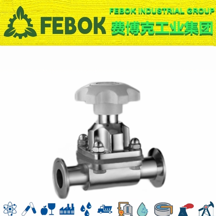 隔膜阀是在阀体和阀盖内装有一挠性隔膜或组合隔膜,其关闭件是与隔膜相连接的一种压缩装置。卫生级隔膜阀开启和关闭是由阀杆的上下运动来实现,当阀杆处于上位时,球形膜片向上弯曲阀门形成导通状态,当阀杆由上往下运动时带动阀芯使膜片弯曲,被迫膜片紧帖阀座区或,关闭了管道流体通向路径。隔膜将流体和驱动部完全隔离,密封性优良的结构。因为其结构上没有普通阀门最有可能泄漏的压盖填料部,所以在密封性的维持和防止杂菌污染方面性能优良。无菌卫生级隔膜阀既通过一个气动头进行遥控操作,也可以通过一个手柄进行手动操作。适用于管道流体的控制和开/关的任务。广泛应用于卫生级的酿酒,乳制品,饮料等食品工业中以及无菌工况的制药领域。推荐30角度安装,有利于阀门清洗后完全排泄,不易造成液体滞留阀门内部。