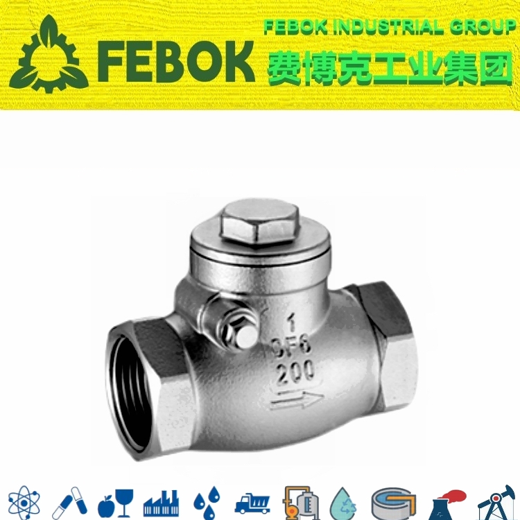 多种螺纹端供选择,旋启式阀瓣,采用脱蜡精密铸造,安装方便,流道通畅、流体阻力小。