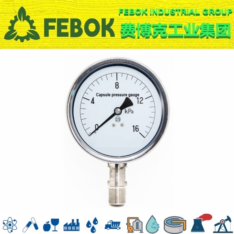 微压表又称膜盒压力表适用于测星对不锈钢无腐蚀作用、无爆炸危险气体的微压或负压,以及测量管道终端风压及微小压力的显示,也用于测量锅炉通风、管道终端气压力显示,如工业加热系统、瓦斯燃烧设备、调压箱、调压站、燃烧器、风机、包装设备、烘焙设备、烘干隧道炉等,以及医用行业呼吸机、麻醉机等器械设备领域。带有过压保护功能,可有效防止过压造成仪表损坏,延长仪表使用寿命。