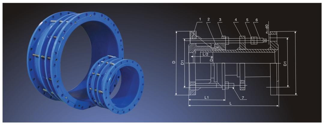本伸缩器内由伸缩座、密封圈、伸缩管等组成,可在定范围内伸缩,以达到现场所需要的连接长度,也能在一定的角度范围内克服因管道对接不同轴而产生的偏移,能极大的方便阀门管道的安装与拆卸。